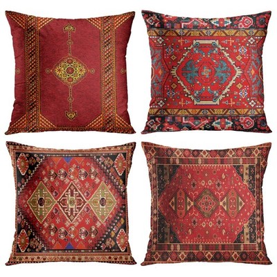 Britimes Throw Pillow Covers Geometric Kilim Moroccan Home Decor Set of 4 Oriental Ikat Pillow Cases Living Room Decorative 20 x 20 Inches Cushion Couch Sofa Pillowcases Colorful Red Tribal
